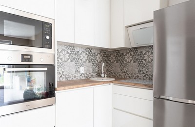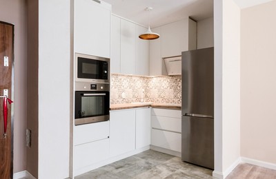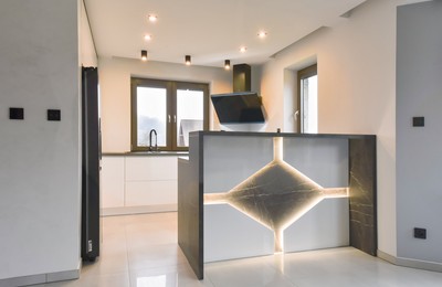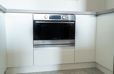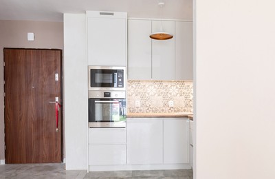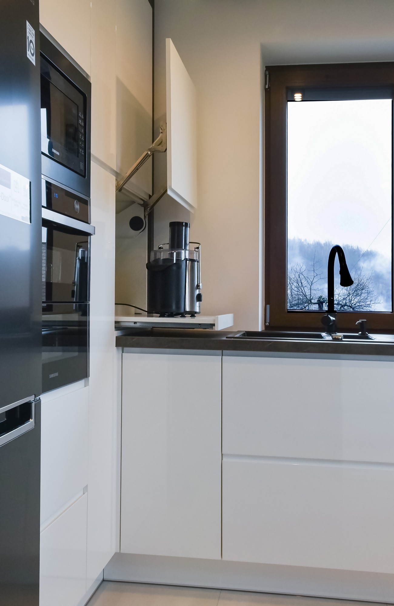 - Informacje techniczne: podłączenie wody i gazu, gniazdka elektryczne, wyciągi, rury